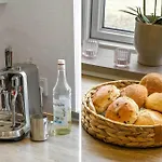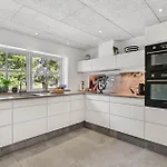 An equipped kitchenette, provided at this Blavand accommodation, includes an electric kettle, a fridge, and an oven.
