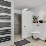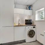 Bv376-Blavand-Ved-Skoven-7 villa comes with a bathroom with a shower and a washing machine. There are a dryer for guests' comfort.